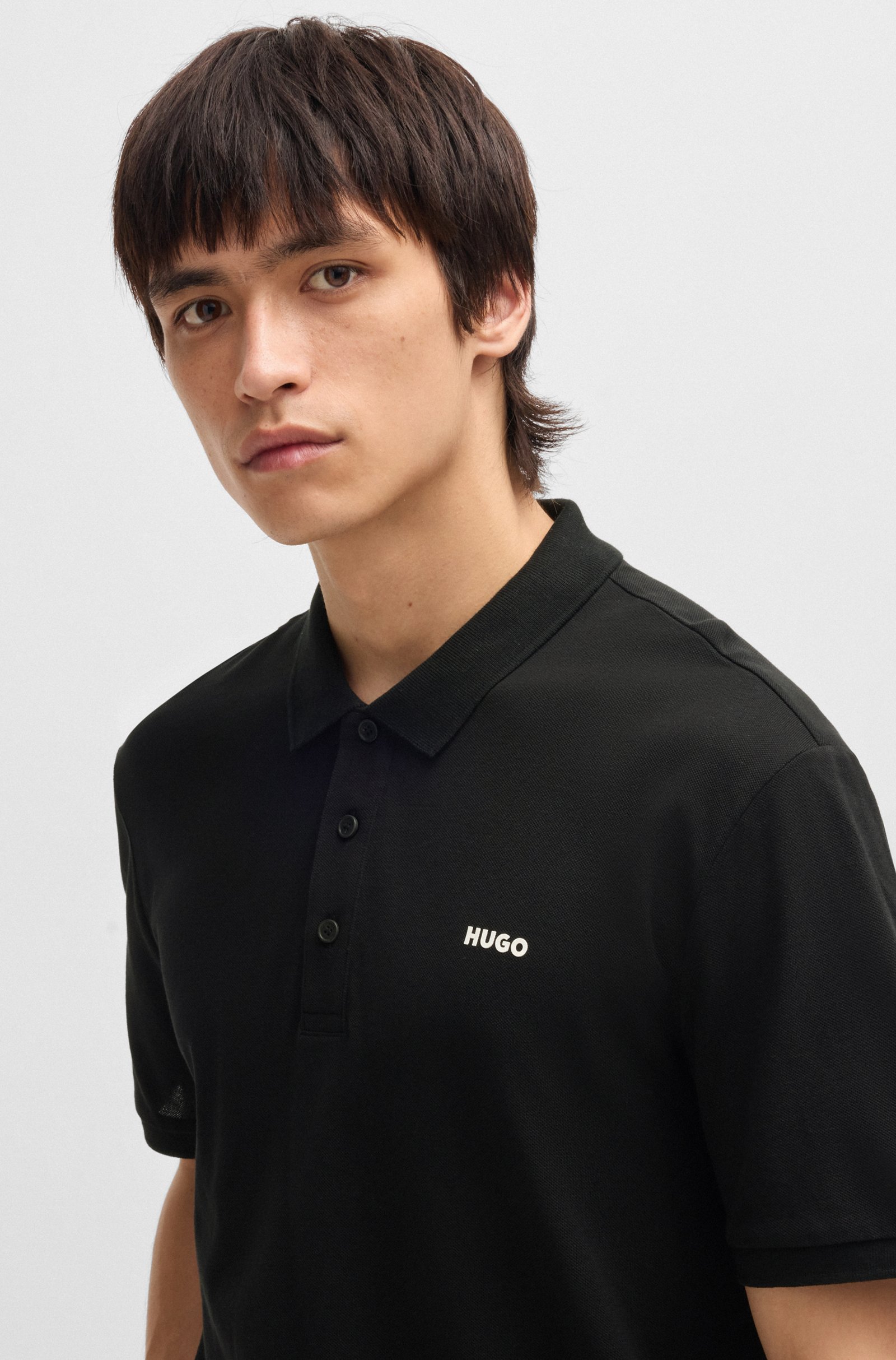 A modern polo shirt by HUGO Menswear. Crafted from breathable cotton for all-day comfort. Features a three-button closure and a flat-knit collar and cuffs. Regular fit Neckline: Polo collar ... Sjá nánar