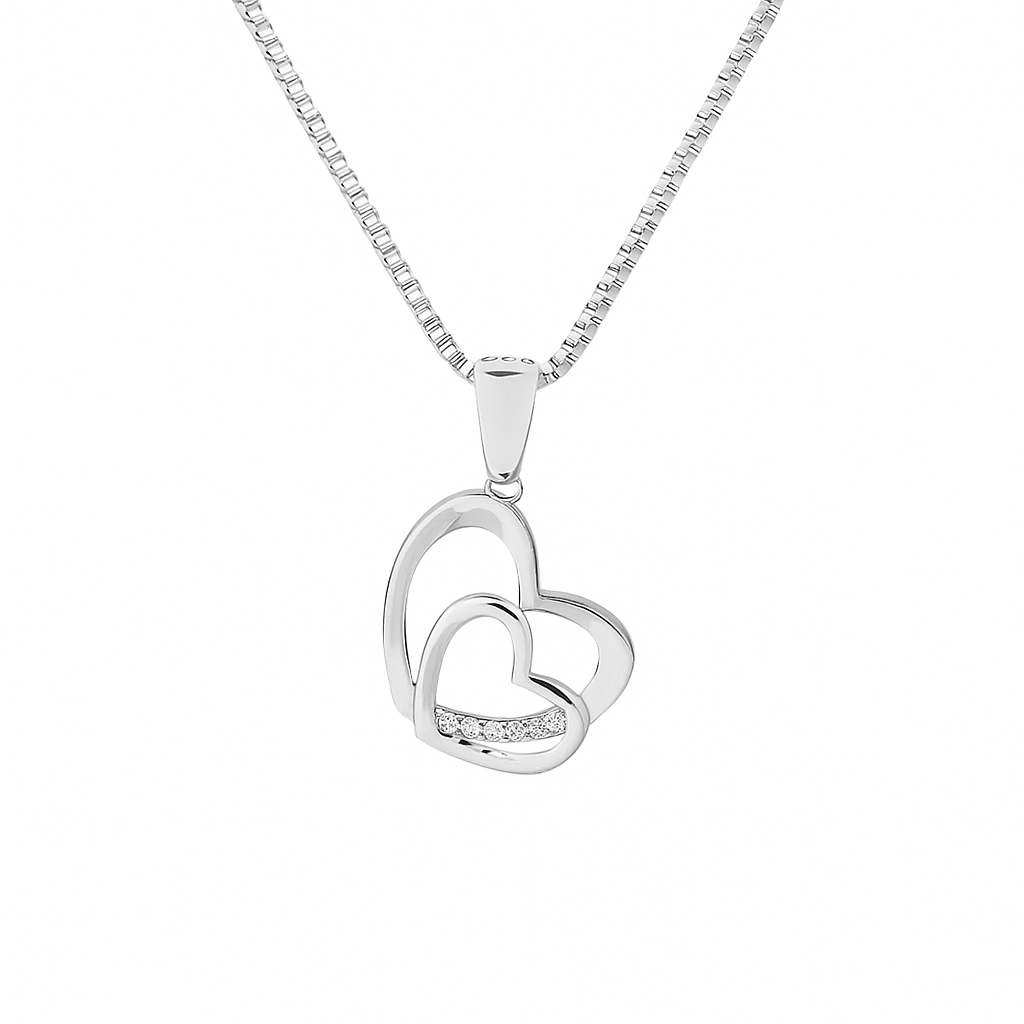 Fallegt silfurhálsmen með 2 hjörtum og zirkonia steinum