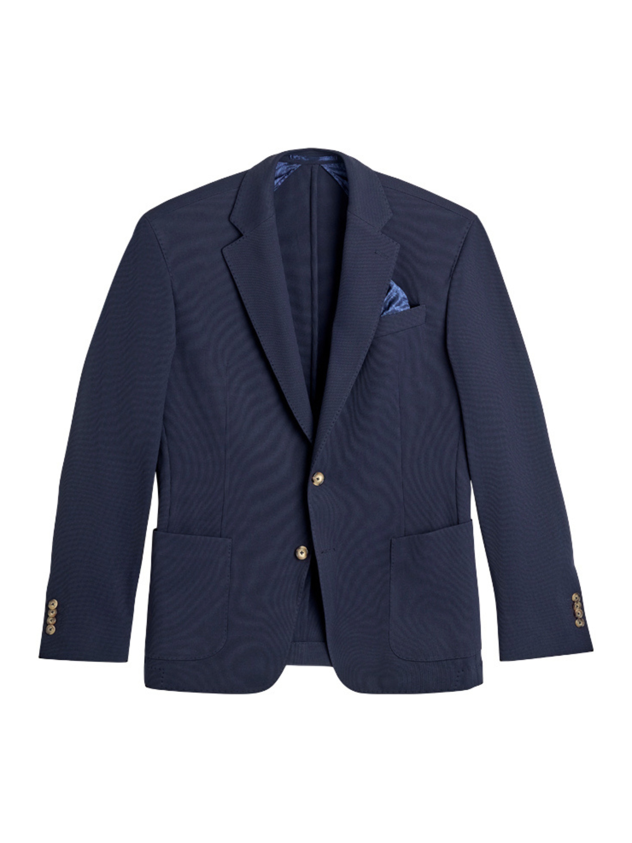 Classic lapel Light constructed shoulders with AMF stitch Patched pockets Two vents on back Unlined Italian fabric Jersey Light weight 4 ways stretch Super Comfortable