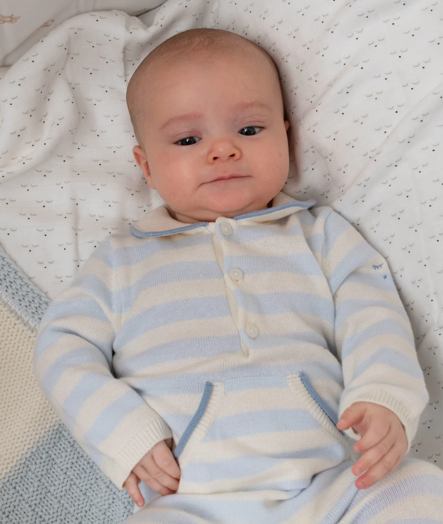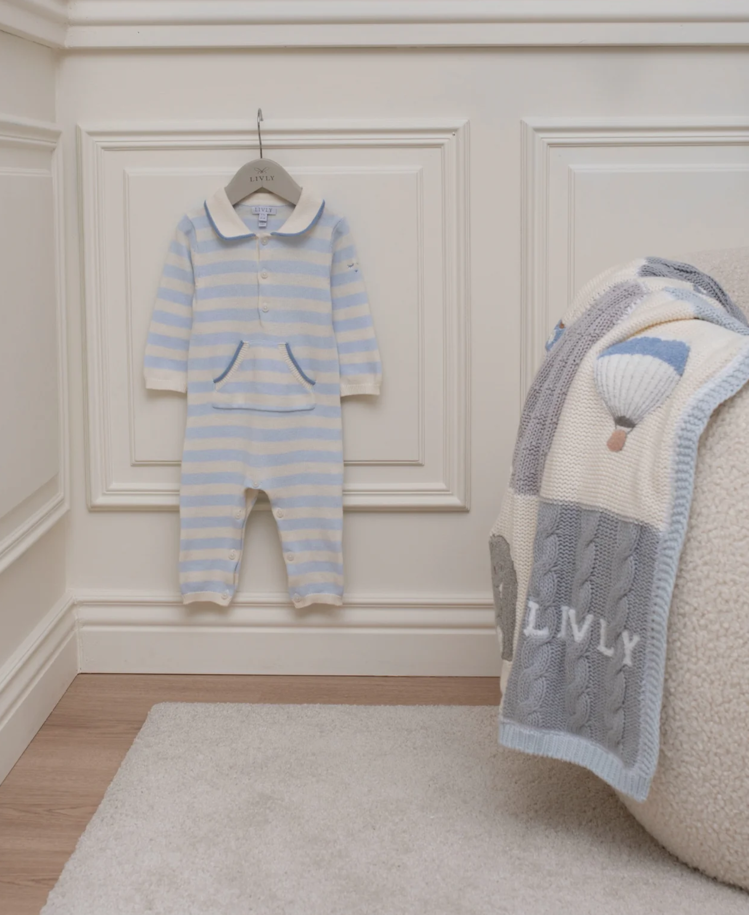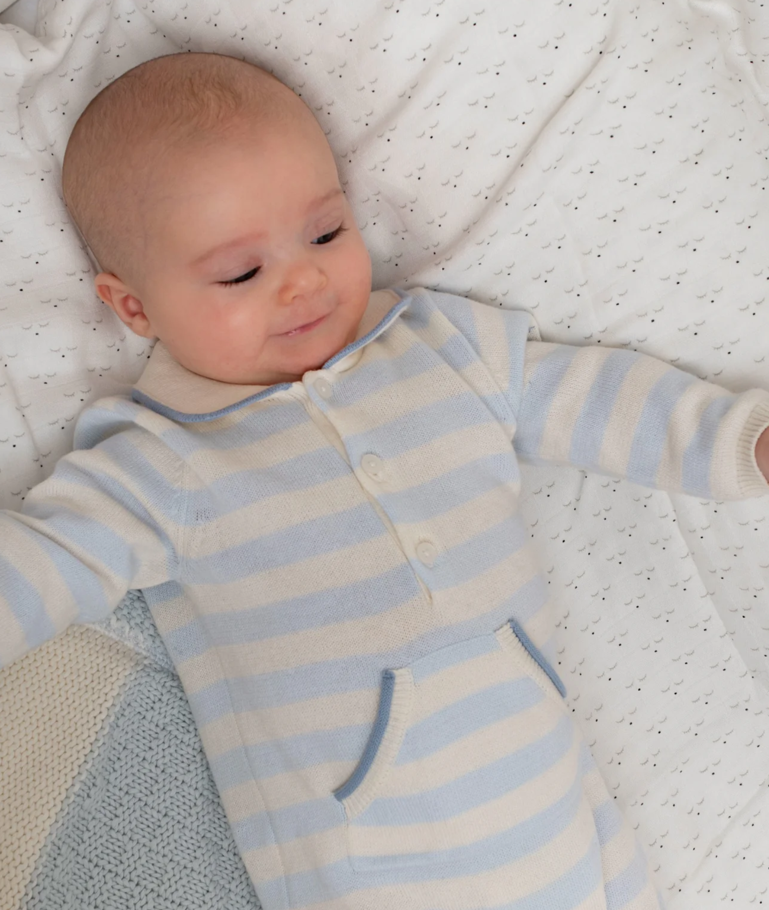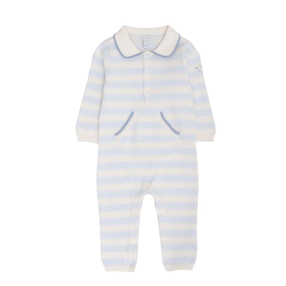 Dásamlega fallegur, röndóttur heilgalli með kraga frá sænska merkinu Livly. 100% bómull.