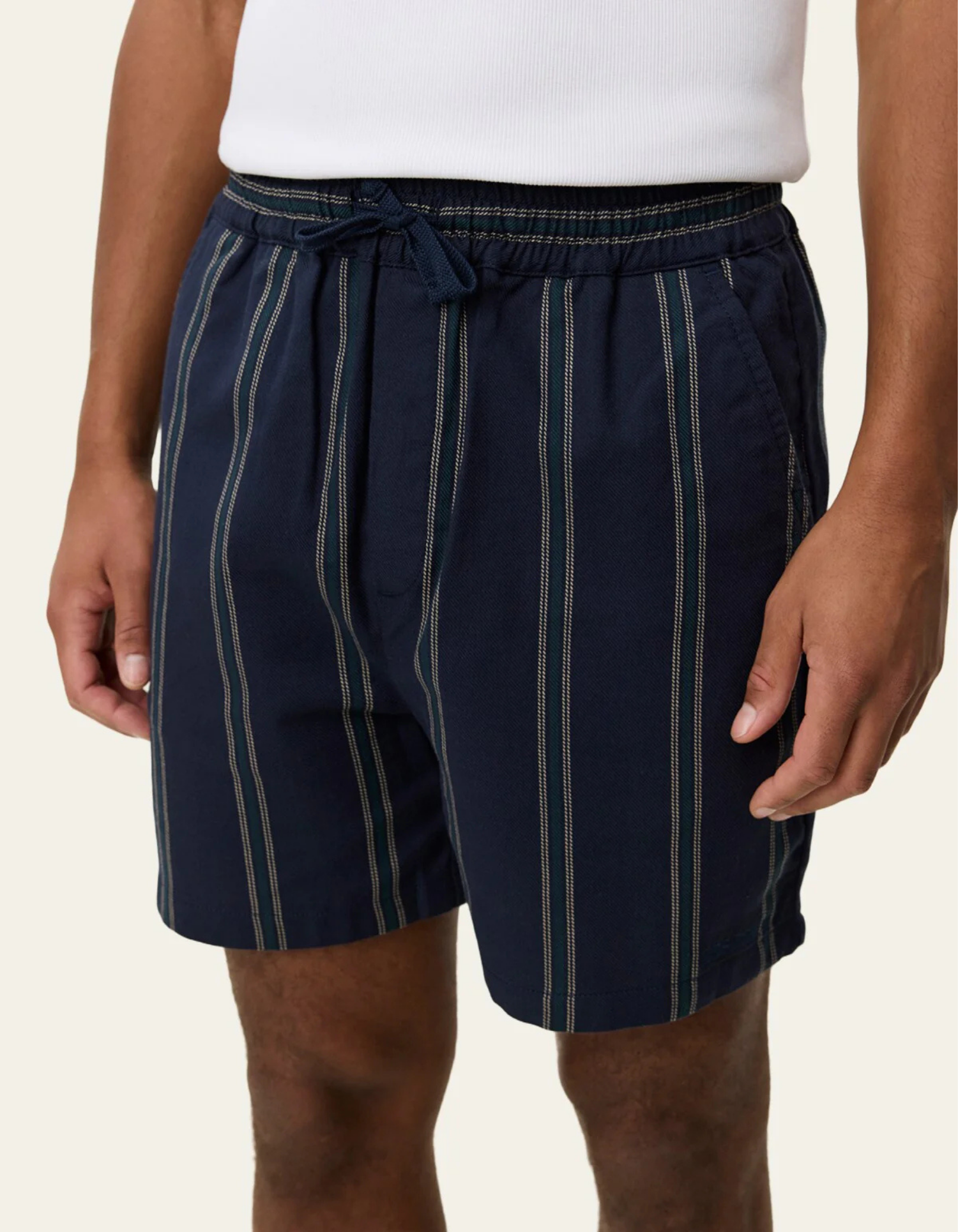 Casual striped shorts in soft cotton twill, designed with an elastic drawstring waist and clean side pockets for everyday wear. 100% Cotton Striped twill fabric Elastic drawstring waist Side ... Sjá nánar