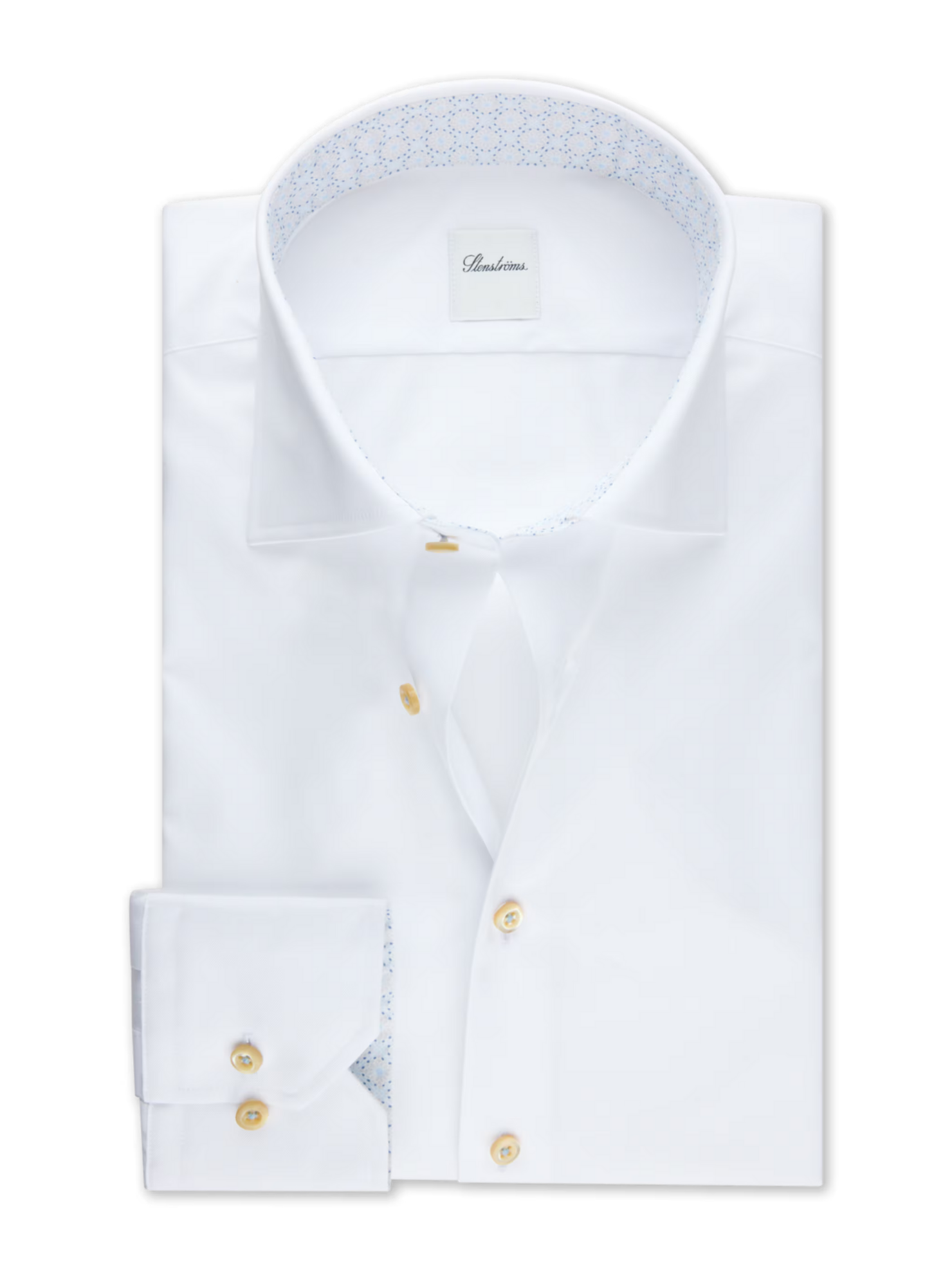 This twill shirt is made of twofold cotton. The shirt is designed with contrast inside collar and cuffs and is detailed with mother of pearl buttons, single cuffs and a cut away collar. ... Sjá nánar