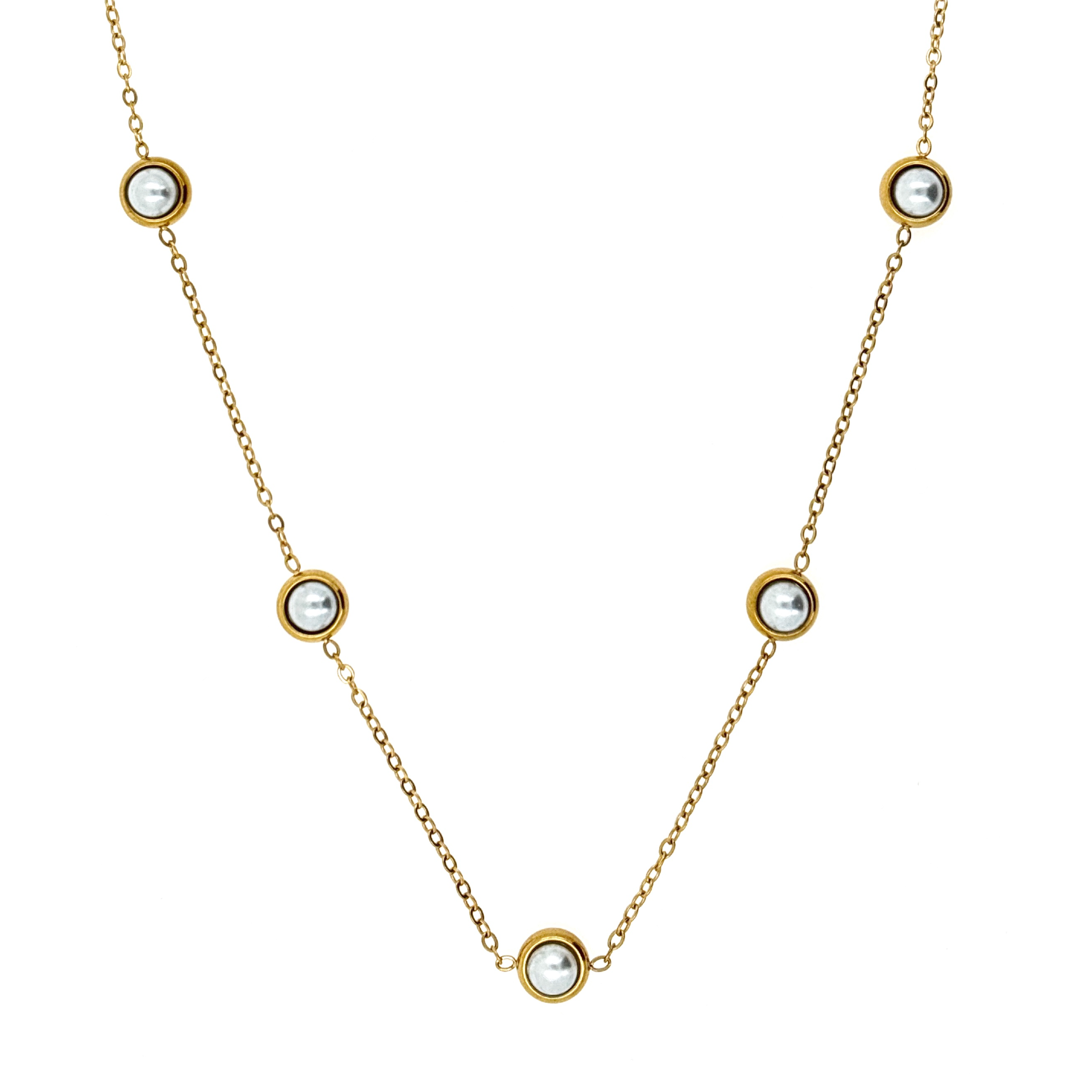 MIRA Zoe gyllt hálsmen með ferskvatnsperlum