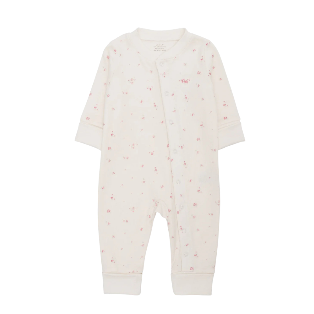 Dásamlega mjúkur og fallega myndskreyttur heilgalli frá sænska merkinu Livly. Galinn er smelltur að framan og með stroffi við ermar og skálmar. 100% pima bómull.