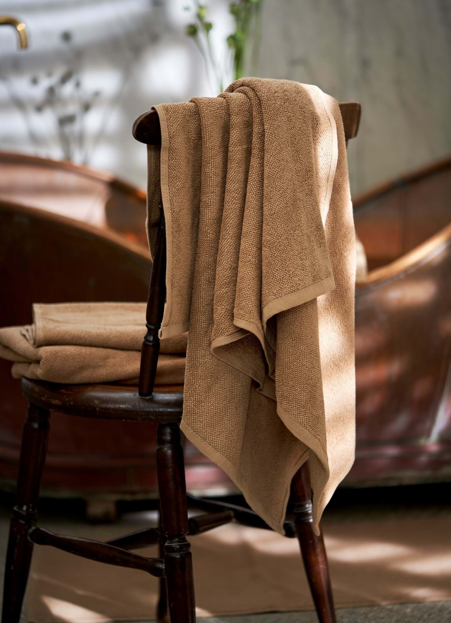 Everyday luxury. The sisters' towel is made of cotton and measures 140 x 70 cm. Clara decorates her bathroom with a scented candle, a beautiful plant and her new, soft towels. "Soft materials ... Sjá nánar