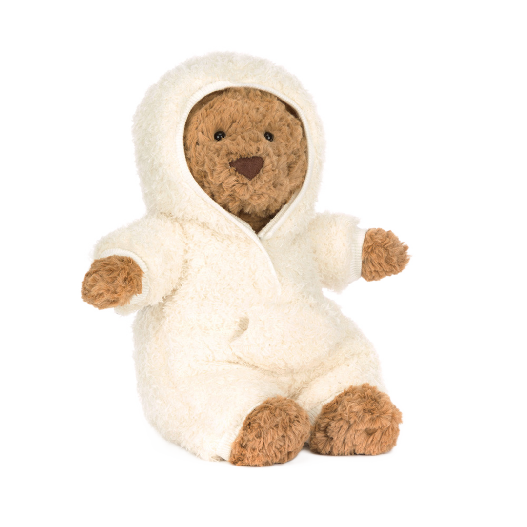 Dimensions: 26cm x 12cm x 8cmSitting Height: 22cmMain Materials: PolyesterInner Fillin Polyester Fibres, PE BeansHard EyeRemovable Clothes | Jellycat bear all in one outfit