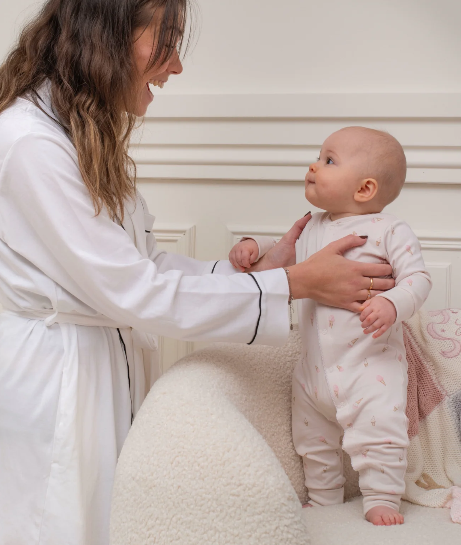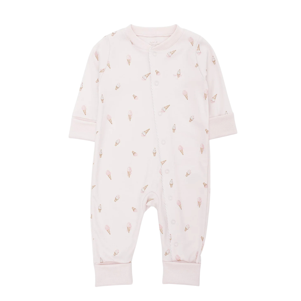 Dásamlega mjúkur og fallega myndskreyttur heilgalli frá sænska merkinu Livly. Galinn er smelltur að framan og með stroffi við ermar og skálmar. 100% pima bómull.