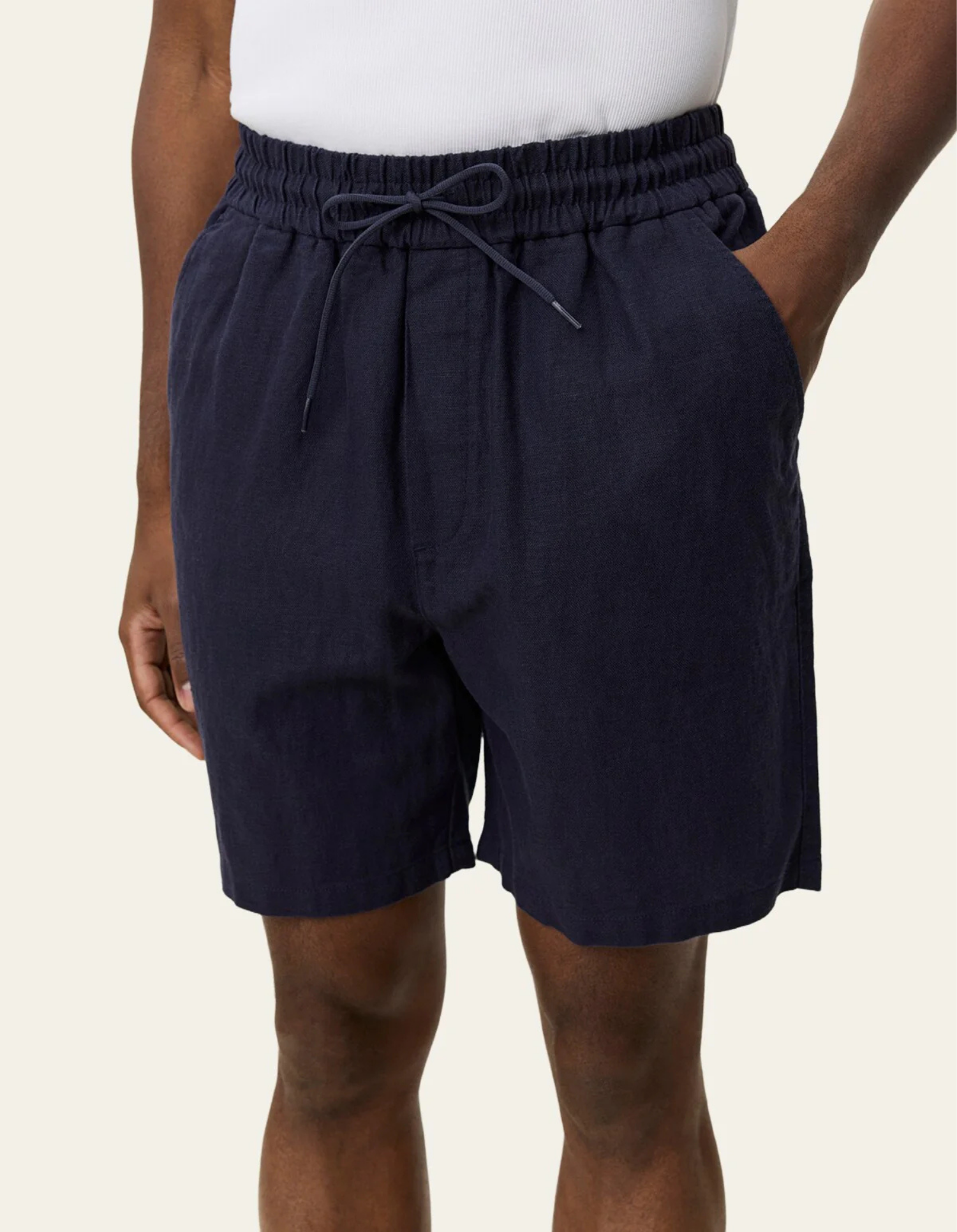 Crisp lightweight shorts in a breathable linen blend. Designed with an elastic drawstring waist and side pockets for an easy relaxed feel. 75% Linen 25% Cotton Crisp woven blend Elastic ... Sjá nánar