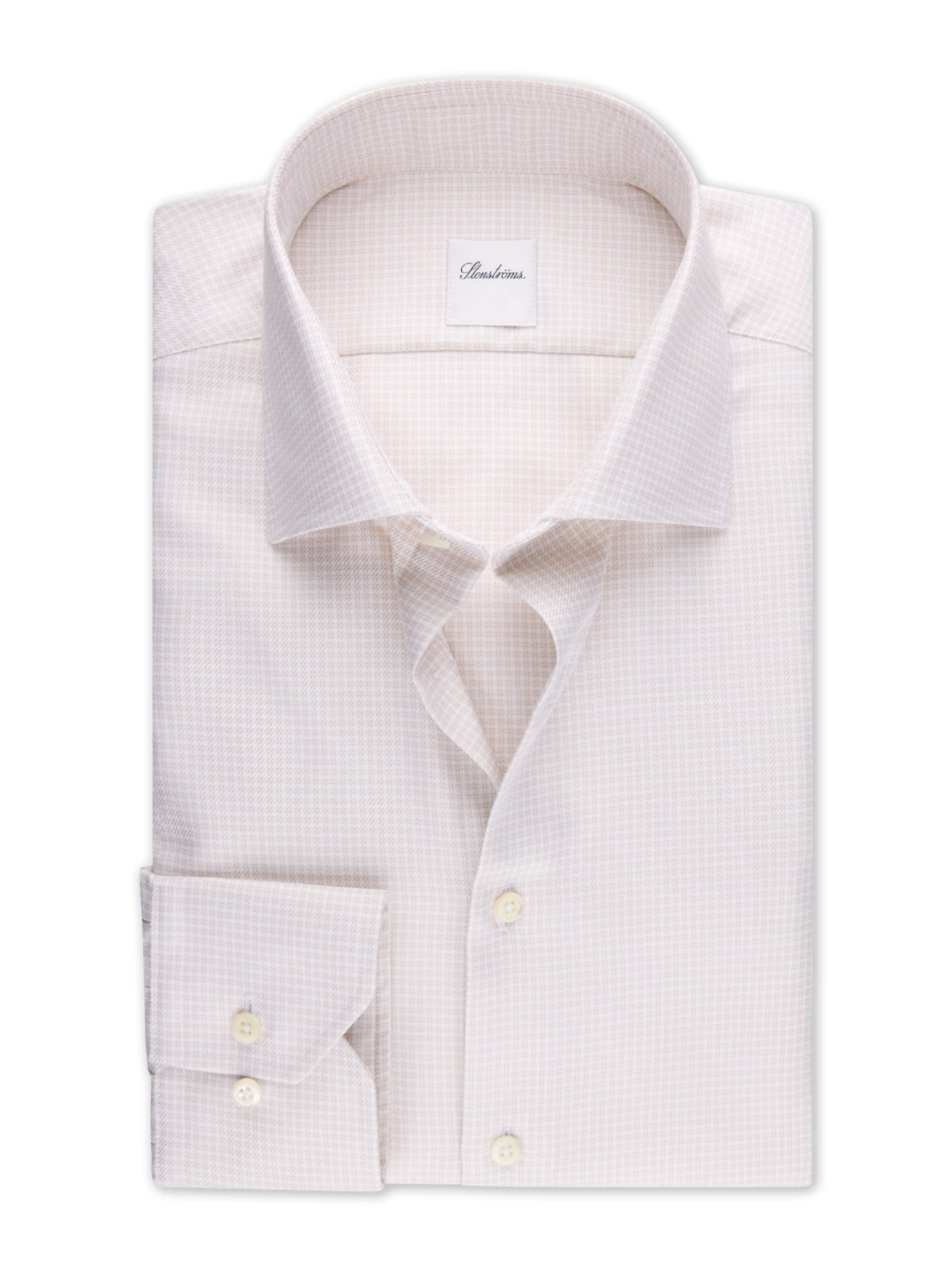 This checked twill shirt is made of cotton and is detailed with mother of pearl buttons, single cuffs and a cut away collar. Moderate cut away collar, No. 77 Single Cuff Twill Mother of Pearl ... Sjá nánar
