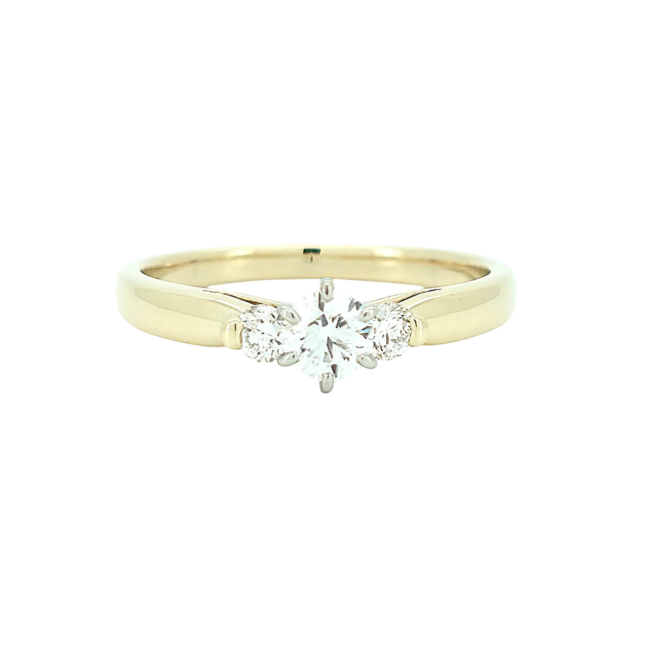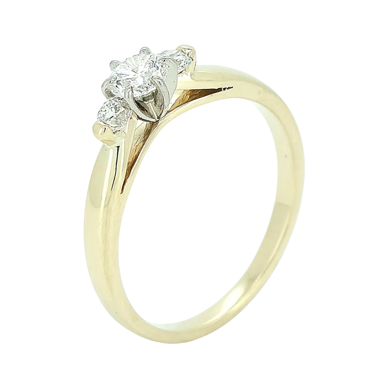 Efni hrings: 14kt gull Steinar: 3 demantar - 0,40ct - Top Wesselton VS - miðjudemanturinn er 0,26ct